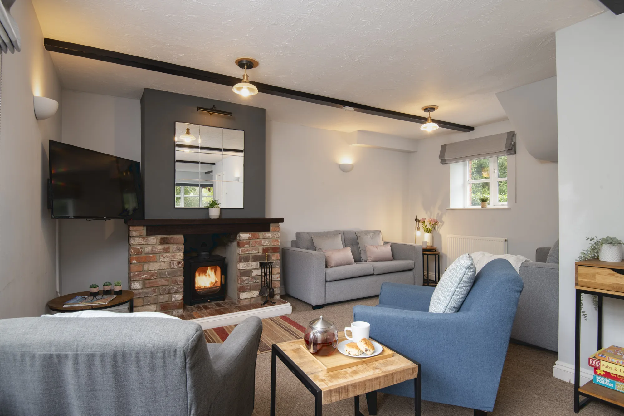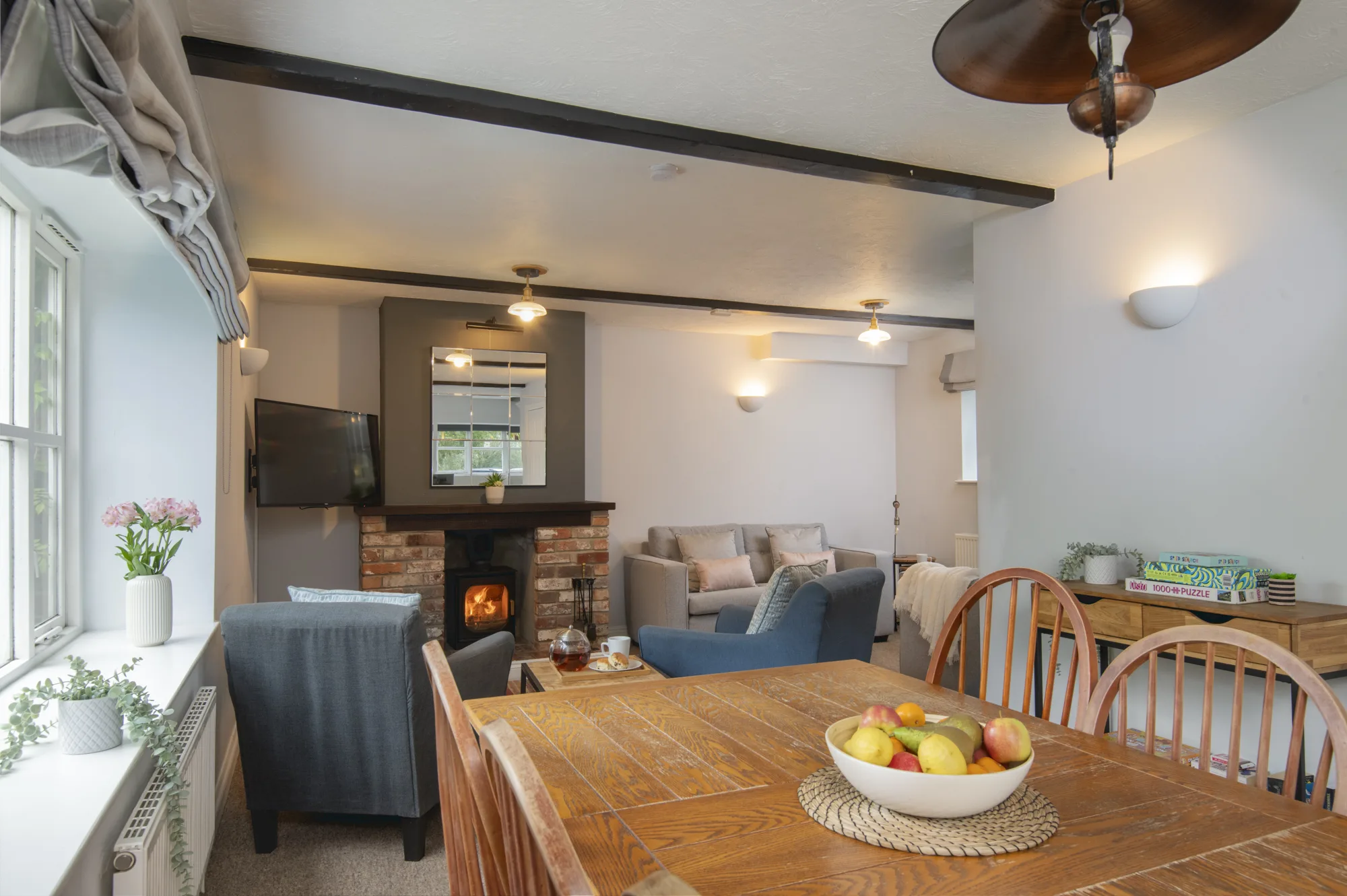 • Spacious open plan living, kitchen and dining room with wood burner and sofa bed for +1