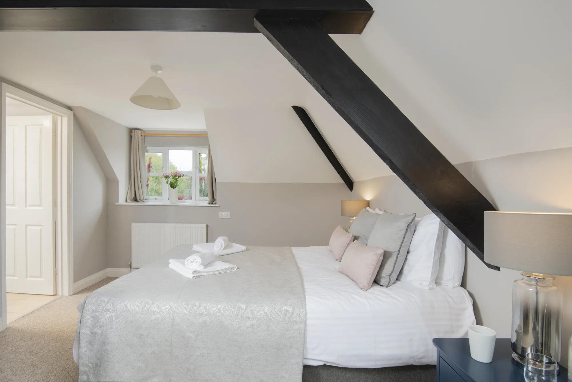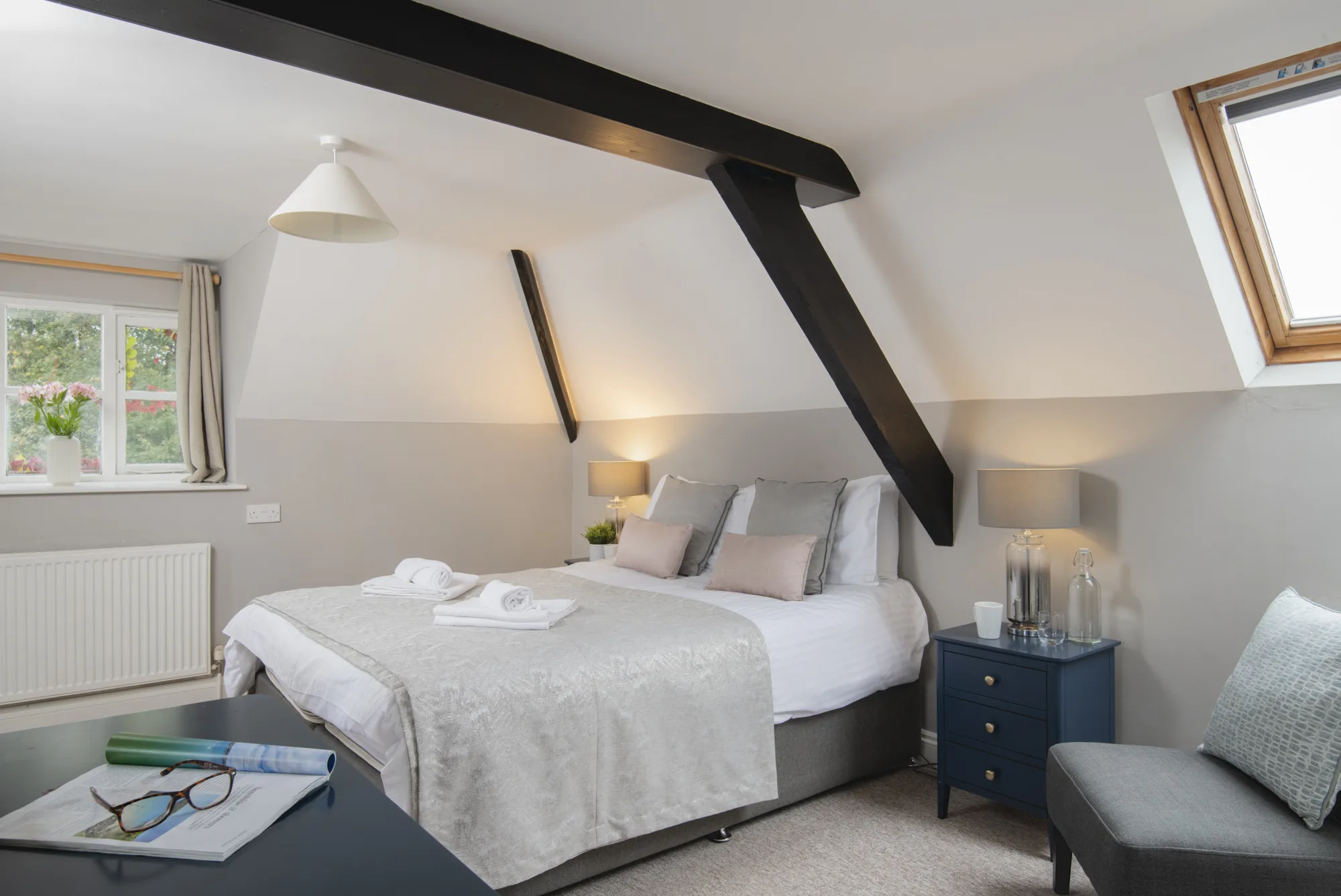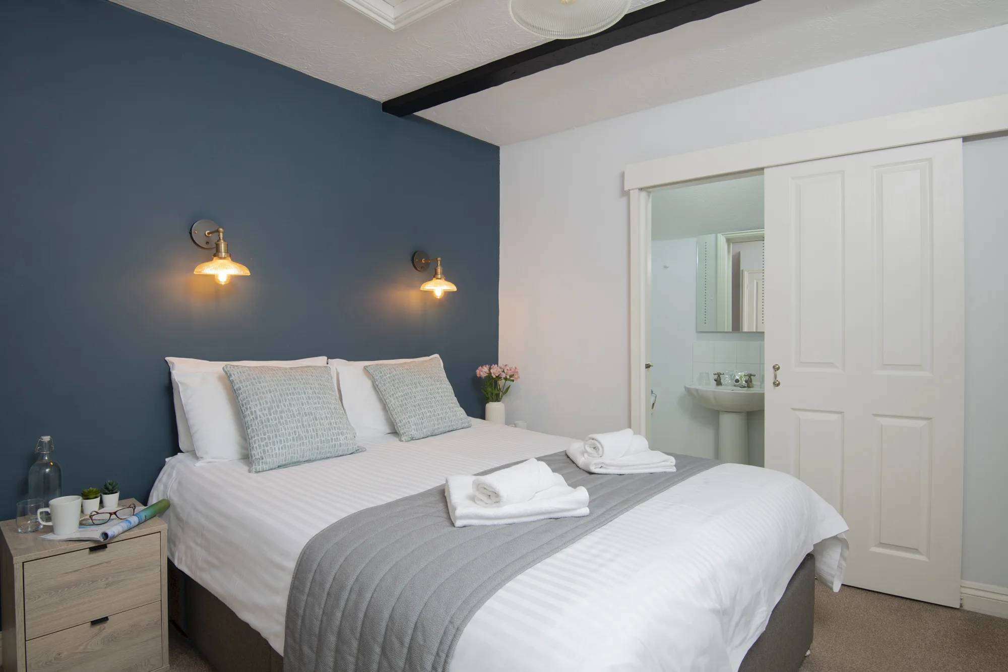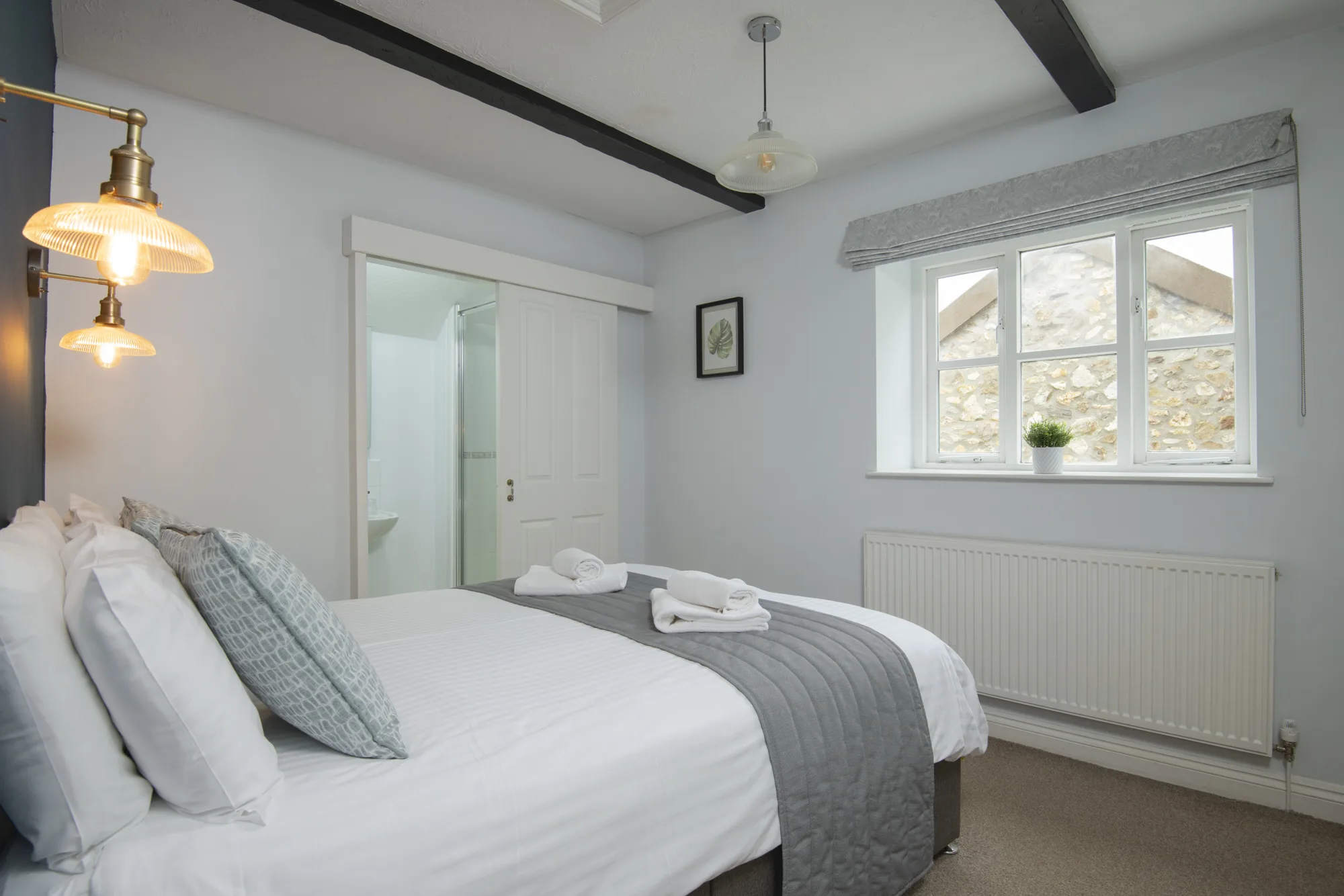 • Double bedroom – 6′ bed with en suite shower room/WC.