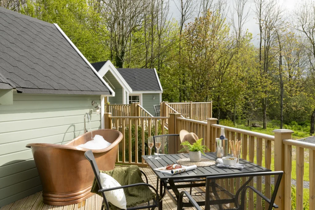 In a quiet woodland clearing, your one-bedroom Woodland Retreat with outdoor copper bath is a romantic hideaway.