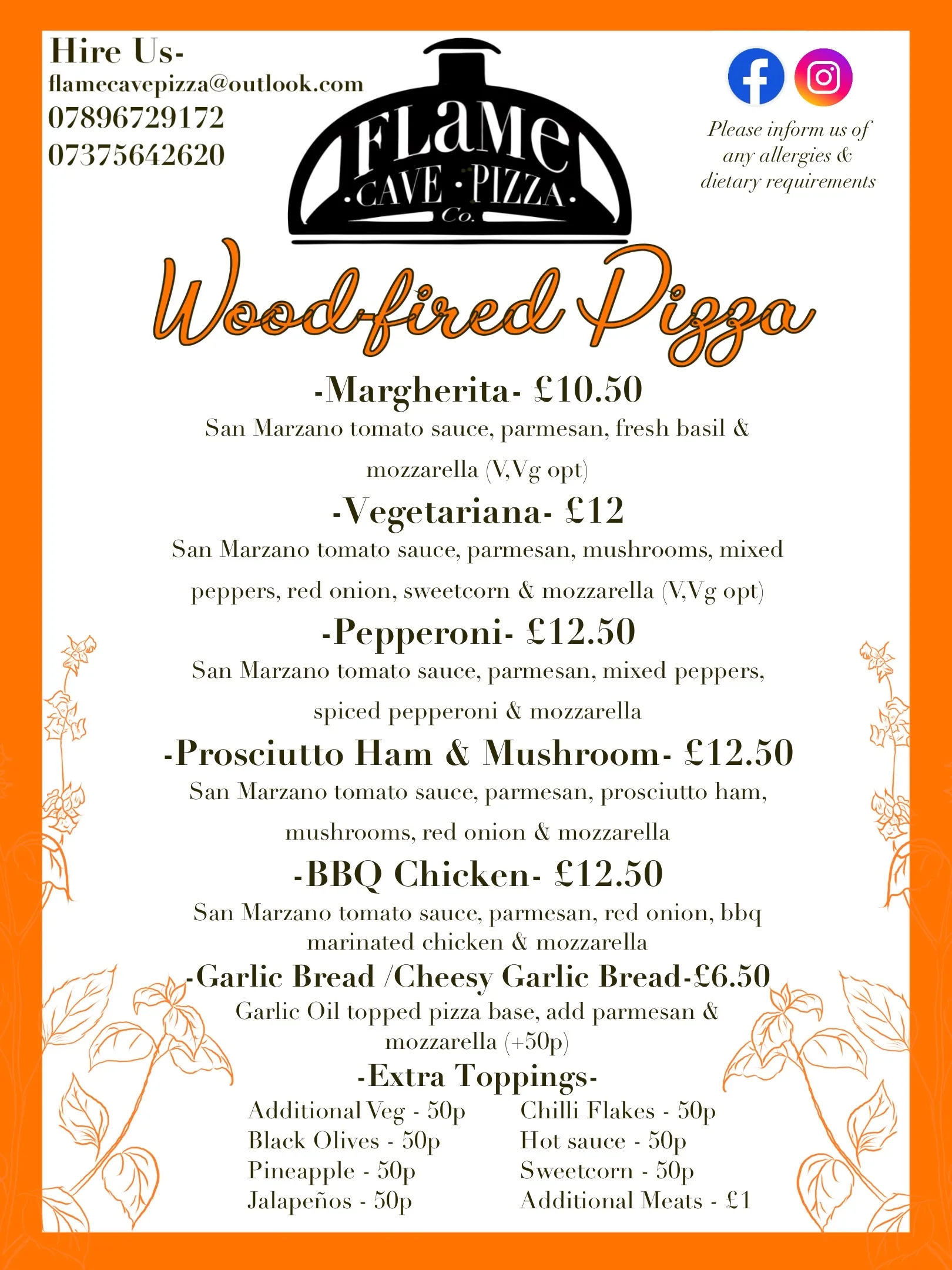 Wednesday and Saturday: Takeaway pizza 5pm-8pm – Served by Flame Cave Pizza.
